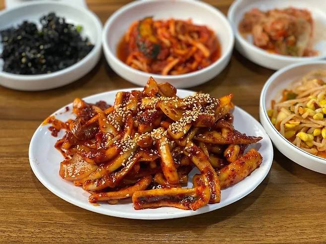 1970년대부터 덕수궁 인근에서 한 자리를 지켜오고 있는 ‘덕수정’. 대표 메뉴 ‘오징어 볶음’은 큼직하게 썬 오징어와 양파를 양념과 함께 빠르게 볶아 은근한 불 향이 살아있다. 물기 없이 오징어를 진득하게 감싸는 양념이 감칠맛을 살려주며 입안에 착 감긴다. 따끈따끈한 흰 쌀밥 위에 올려 먹으면 매콤한 오징어와 담백한 밥의 조화가 일품이다.