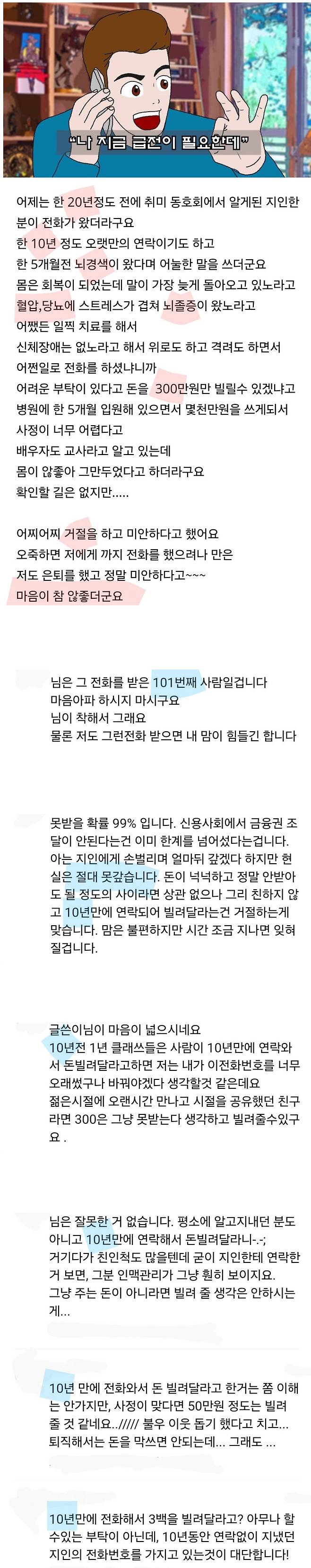 10년 만에 연락 와서 돈 빌려 달라는 지인