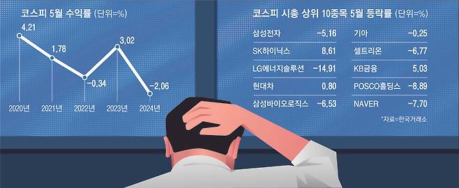 한편 코스피 5월 수익률은 올해를 포함해 2022년 5월, 2019년 5월 등 6차례 ‘마이너스’를 기록했고, 4차례는 오히려 지수가 상승했다.