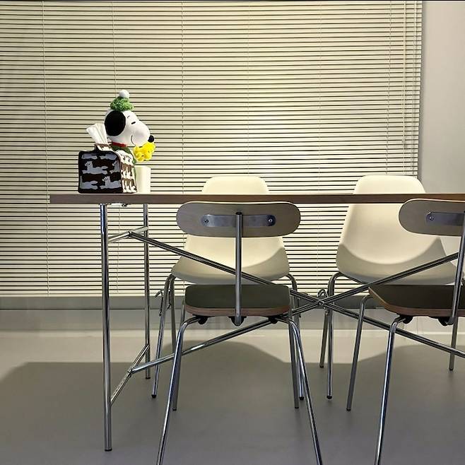 그리고 저희 집 모든 창은 커튼이 아닌 블라인드를 달았는데 깔끔하고 군더더기 없어 철제 테이블이랑 체어들과도 잘 어울리는 것 같아요 :)