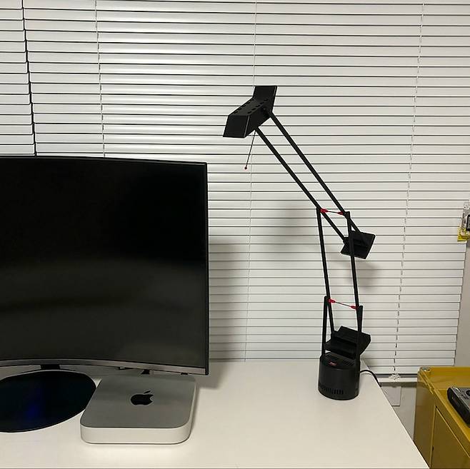 데스크 조명은 아르떼미데 티지오 조명이에요. 데스크랑 찰떡으로 잘 어울려서 볼 때마다 기분이 좋아진답니다!