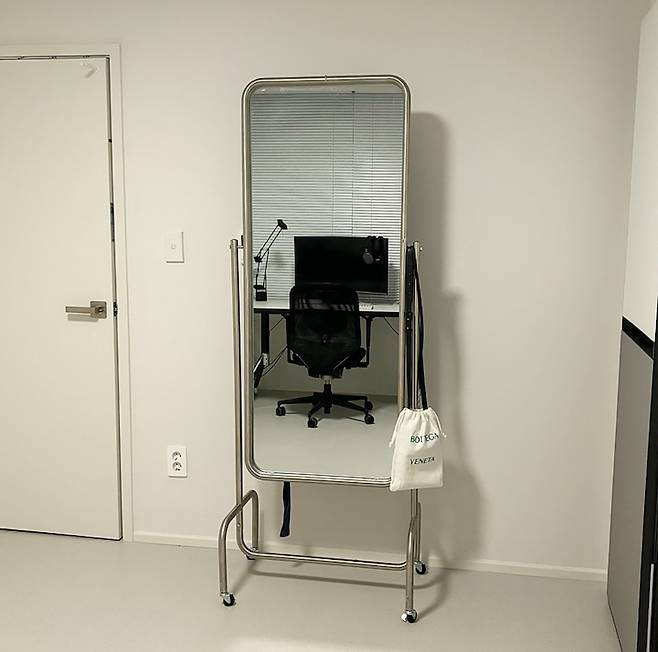 스타일러 앞엔 스테인리스 전신거울을 두었는데 디자인도 깔끔하고 거울 크기가 큼직해서 너무 좋아요!