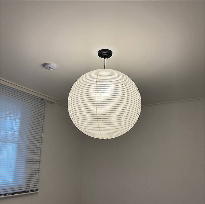 침실 조명은 이사무노구치 아카리 조명으로 선택했어요. 침실 한가운데 달이 뜬 이미지를 상상하며 과감하게 큰 크기로 선택했는데, 빛이 은은한 편이라 너무 밝지 않아 더 좋답니다!