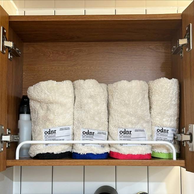 깔끔하게 수납이 가능한 수건장과, 개방형 선반을 두어 기초 제품들을 올려두니 바로바로 찾아 쓰기 좋더라고요.