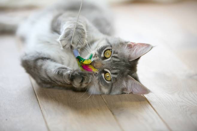 고양이가 심심하거나 집사에게 무언가 요구하는 게 있을 때 전선을 물어뜯을 수 있는데요. 이럴 땐 사냥 놀이로 고양이가 전선에 관심을 가지지 않도록 하는 게 중요합니다.