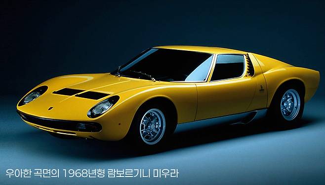 슈퍼카 디자인의 거장 마르첼로 간디니의 디자인으로 나온 미우라는 우아한 곡선과 곡면에 절제된 조형으로 성능과 미학을 양립한 슈퍼카 라는 장르의 시초입니다.