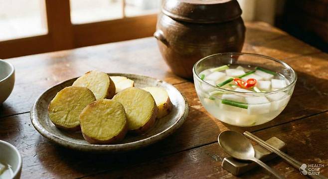 반면, 고구마를 먹고 소화에 부담을 느낀다면 음식 궁합을 다시 살펴볼 필요가 있다. 김치나 동치미와 함께 먹으면 고구마의 소화가 훨씬 쉬워진다. 동치미 무에는 디아스타아제라는 소화효소가 들어 있고, 국물 속 유기산은 소화를 촉진한다. 김치의 짠맛은 고구마의 달콤함을 잡아주며, 고구마에 포함된 칼륨은 김치 속 나트륨 배출을 돕는 효과도 있다.