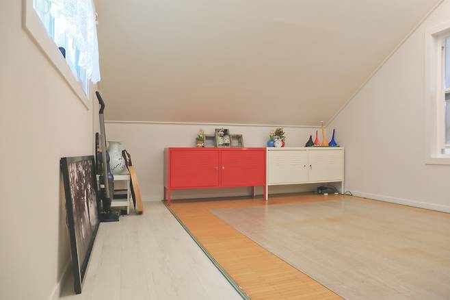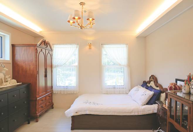 평소 건축의 꽃은 조명이라고 생각하는 건축주를 위해 조명에도 세심한 계획이 적용됐다. 각 공간에 다양한 디자인 조명을 사용했고 같은 공간이라도 조명을 키고 끄며 어떻게 조합하느냐에 따라 다른 분위기가 연출되도록 했다. 이외에도 가끔 방문하는 자녀들과 지인을 위해 거실 한쪽 벽면에 낸 문을 통해 작은방과 다락으로 이어지도록 했다.