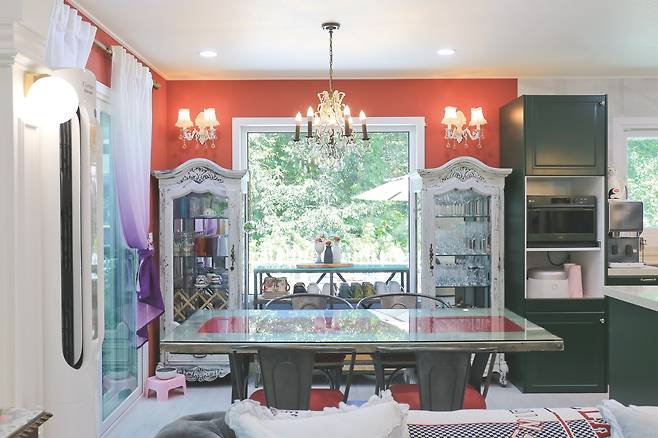 한편 거실이 아늑했다면 식당과 주방은 건축주가 특별히 요청한 아치형 기둥과 레드 계열 포인트 벽지 덕분에 클래식한 멋을 뽐낸다. 특히 건축주가 신경 쓴 곳은 주방이다.