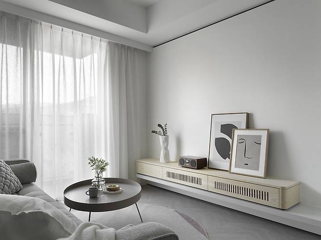 절제된 색감과 곡선의 미학, 거실 디자인