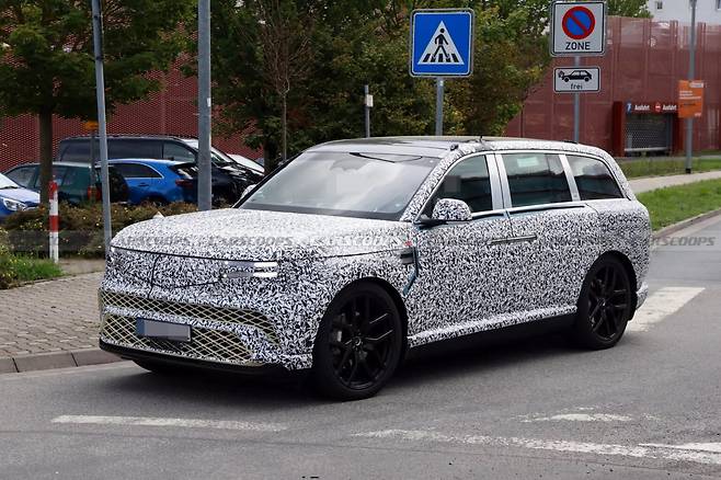 제네시스가 3년여간 공들여 개발해 온 플래그십 전기 SUV ‘GV90’이 마침내 정체를 드러내기 시작했다. 유럽에서 포착된 최신 테스트카는 위장막을 대폭 제거한 채 도로를 달리며, 그동안 베일에 싸여있던 혁신적 설계의 실체를 공개했다.