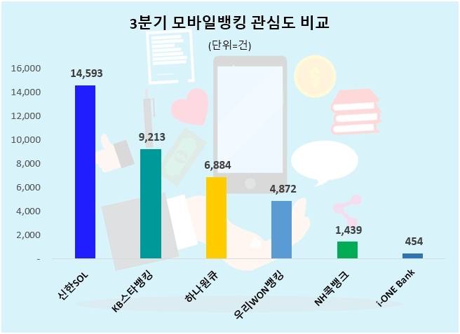 KB스타뱅킹이 9213건으로 3분기 모바일뱅킹 관심도 2위에 올랐다.