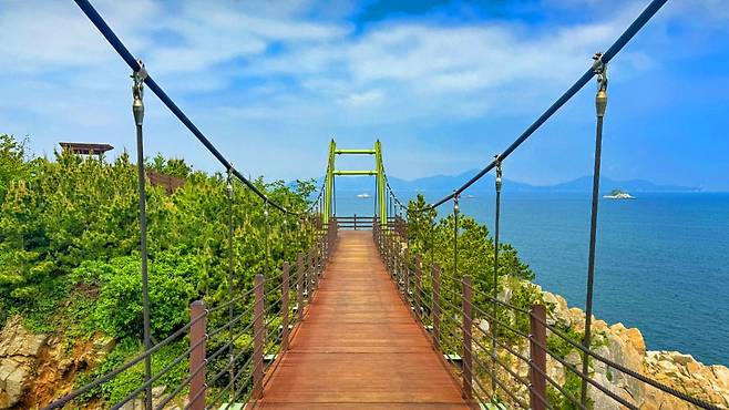 이수도의 특별함은 바다 위에 놓인 출렁다리에서부터 시작된다. 짧지만 스릴 넘치는 다리를 건너면, 자연 상태로 방목된 사슴과 염소를 만나는 둘레길이 이어진다.