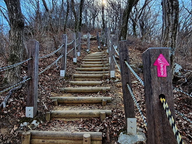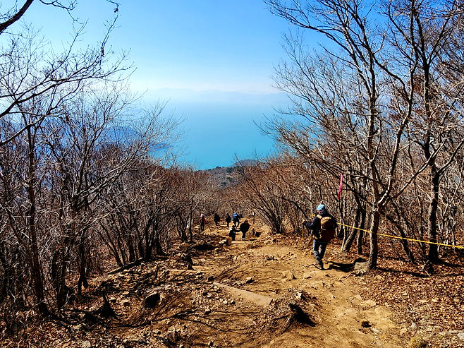 오르막이 이어질수록 머리 위를 덮던 숲은 점차 옅어지고, 시야가 열리기 시작합니다. 위로는 하늘이 가까워지고, 아래로는 푸른 바다가 다시 모습을 드러냅니다. 이쯤이면 연대봉 정상에 거의 다 왔다는 신호입니다.