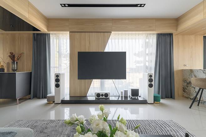 이 집에서 가장 눈길을 끄는 건 거실에서 다이닝, 그리고 발코니까지 이어지는 유기적인 흐름입니다.