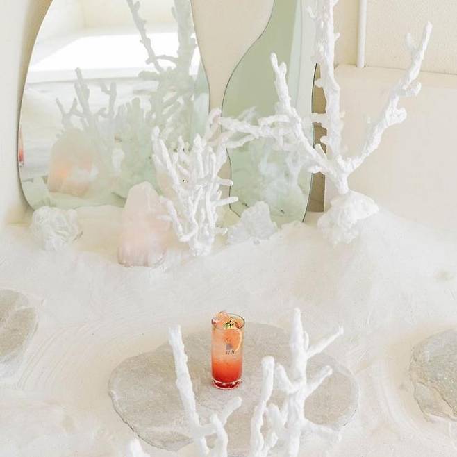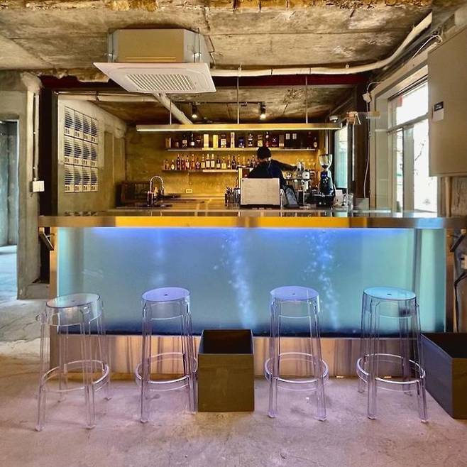 창신동에서 느껴지는 짭조름한 바다 내음. 물의 깊이에 따라 변하는 색의 농도를 내부 층별로 달리 표현한 덕분에 심해 동굴부터 백사장까지 이어지는 듯한 인테리어를 보는 재미가 쏠쏠하다. 이곳에서 가장 인기 있는 층은 바로 3층과 루프탑. 푸른 하늘이 보이는 공간에서 화려한 색감의 음료들과 칵테일, 위스키 등을 마시다 보면 마치 바다 한 모금을 마시는 것과 기분을 경험할 수 있다. 다양한 풍미를 느낄 수 있는 이곳에서 푸른 하늘 아래 맑은 물결이 일렁이는 바닷가를 느껴보는 걸 추천한다.