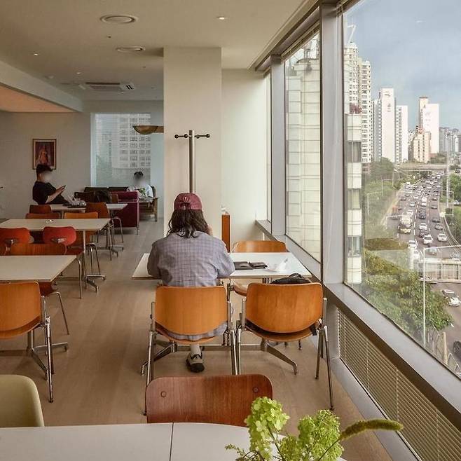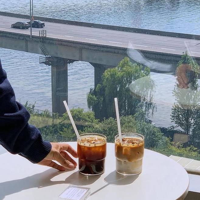 드넓은 한강의 전경을 뻥 뚫린 하늘과 함께 볼 수 있는 ‘타이프커피 한강점’. 상수역 부근 건물의 5층에 위치한 이곳에서는 63빌딩부터 서강대교, 강변북로, 국회의사당까지 파노라마처럼 한강뷰를 감상할 수 있다. 특히, 대부분의 좌석이 창가 뷰인지라 어디에 앉아도 한강을 한눈에 볼 수 있는 것이 이곳의 특징이자 장점. 탁 트인 공간에서 낮에는 디저트를, 저녁엔 와인과 핸드드립 커피를 즐길 수 있다. 푸른 하늘을 볼 수 있는 낮과 노을빛이 빌딩에 그을리는 저녁, 야경이 아름다운 밤까지. 어떤 시간대에도 아름다운 이곳에서 서울의 하늘을 다채롭게 누려보자.