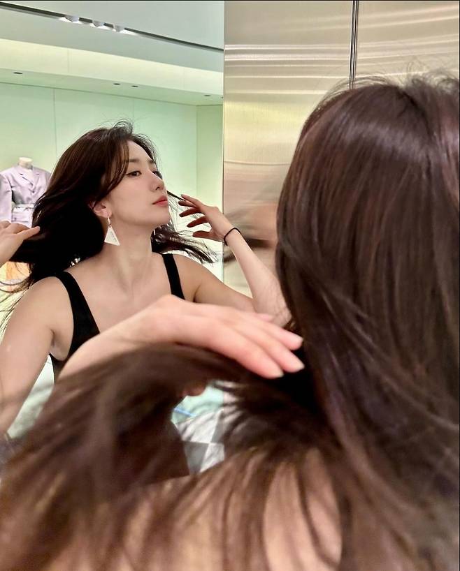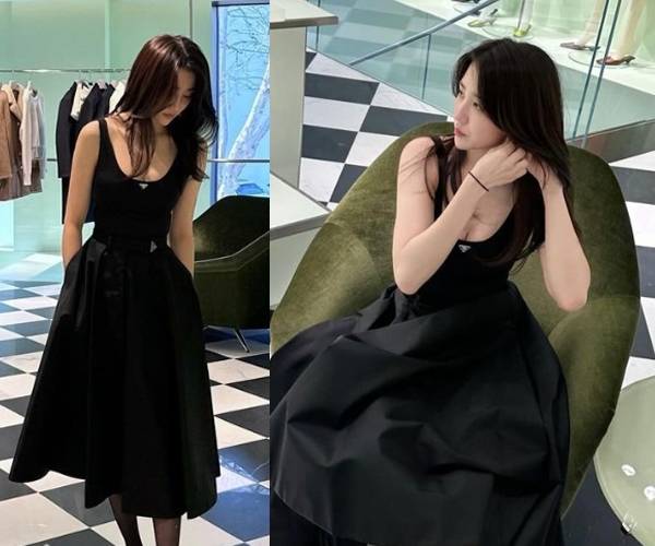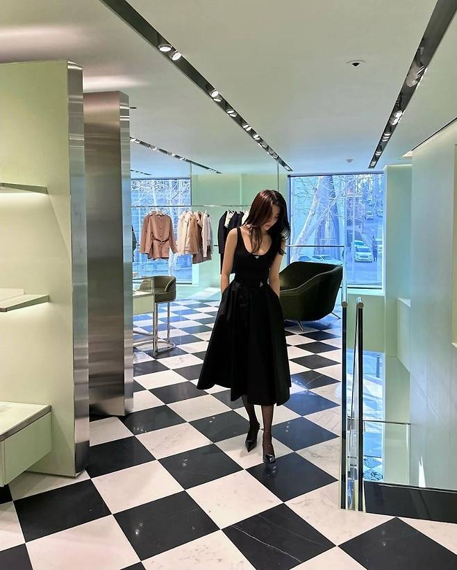 박하선은 검은색 보디슈트 위에 롱스커트를 착용해 우아하고 페미닌한 분위기를 돋보였습니다.