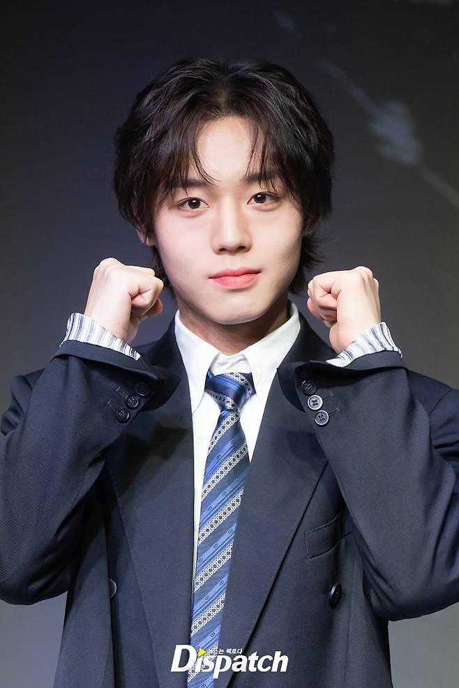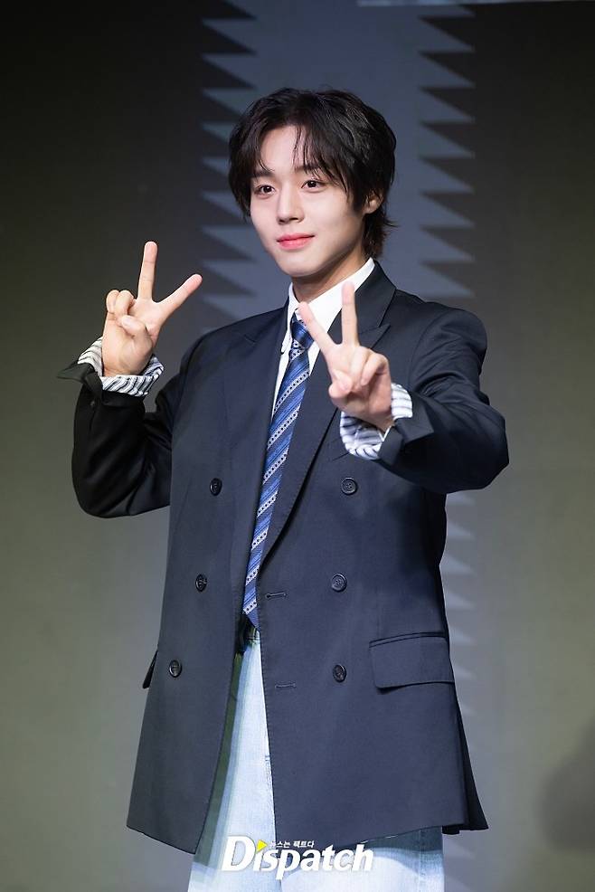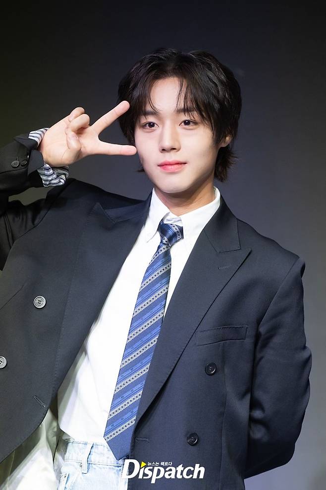 박지훈은 스쿨룩 스타일로 멋을 냈다. 잘생긴 비주얼이 시선을 사로잡았다.