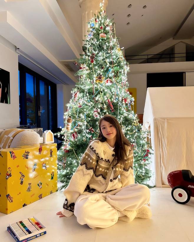 겨울철 실내에서 편안하면서도 따뜻한 분위기를 연출하고 싶다면 주목해야 할 룩이다. 베이지와 브라운 톤이 어우러진 노르딕 패턴의 두툼한 니트 카디건은 계절감을 물씬 풍긴다. 여기에 넉넉한 핏의 화이트 조거 팬츠를 매치해 활동성과 스타일을 동시에 잡았다. 전체적으로 부드러운 아이보리 계열로 톤을 통일하여 아늑하고 사랑스러운 ‘꾸안꾸(꾸민 듯 안 꾸민 듯)’ 패션의 정석을 보여준다.