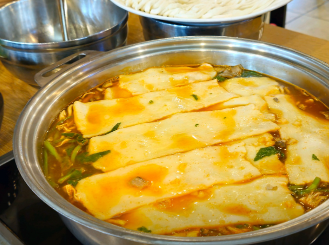 쫄깃한 손수제비와 얼큰한 국물로 하루 1,000그릇이 팔리는 인기 맛집입니다. 특히 사장님이 직접 테이블에서 넙적한 수제비를 찢어 넣어주는 퍼포먼스로 유명하며, 미나리와 고기가 듬뿍 들어간 얼큰 샤브 손칼국수는 많은 이들이 다시 찾게 되는 메뉴입니다.