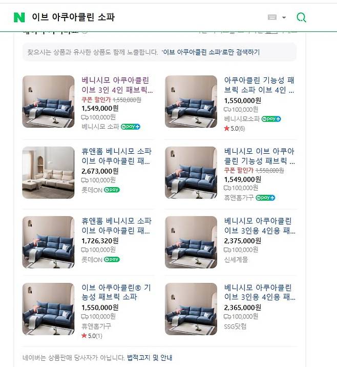 그날 아쿠아클린 소파 찾아보니