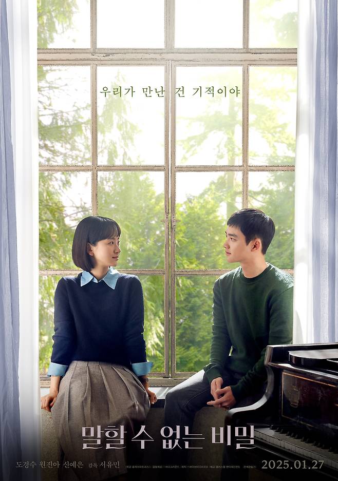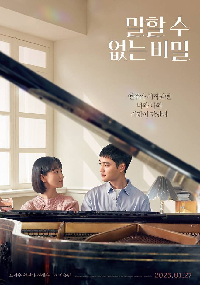이런 가운데 '말할 수 없는 비밀'측이 손익분기점 돌파 기념으로 미공개 포스터 4종을 특별 공개해 눈길을 모았다. 먼저 피아노 앞에 앉은 유준(도경수)과 정아(원진아)가 담긴 포스터가 시선을 사로잡는다. 연습실에서 함께 피아노를 연주하며 서로를 다정하게 바라보는 두 사람의 모습은 말랑말랑한 첫사랑 감성으로 연애 세포를 자극한다.