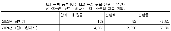 5대 은행이 판매한 홍콩H지수 ELS에서만 올해 들어 약 2천300억원의 원금손실이 확정되는 등 투자자 손실이 눈덩이처럼 불어나는 분위기다.
