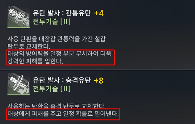 +8 강화에 열리는 애드온이 무조건 좋은 것은 아니다. 예를 들어 퍼니셔 '유탄 발사' 스킬의 경우, 1번째 애드온은 방어력 관통이 35 추가되는 데 반해 2번째 애드온은 밀려남 효과가 추가될 뿐이다. DPS적으로는 1번째 애드온 옵션이 더 유용하므로 사냥을 할 때는 이를 선택해야 하며, 2번째 애드온은 PvP 상황에서 선택하는 것이 좋다.