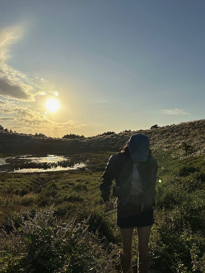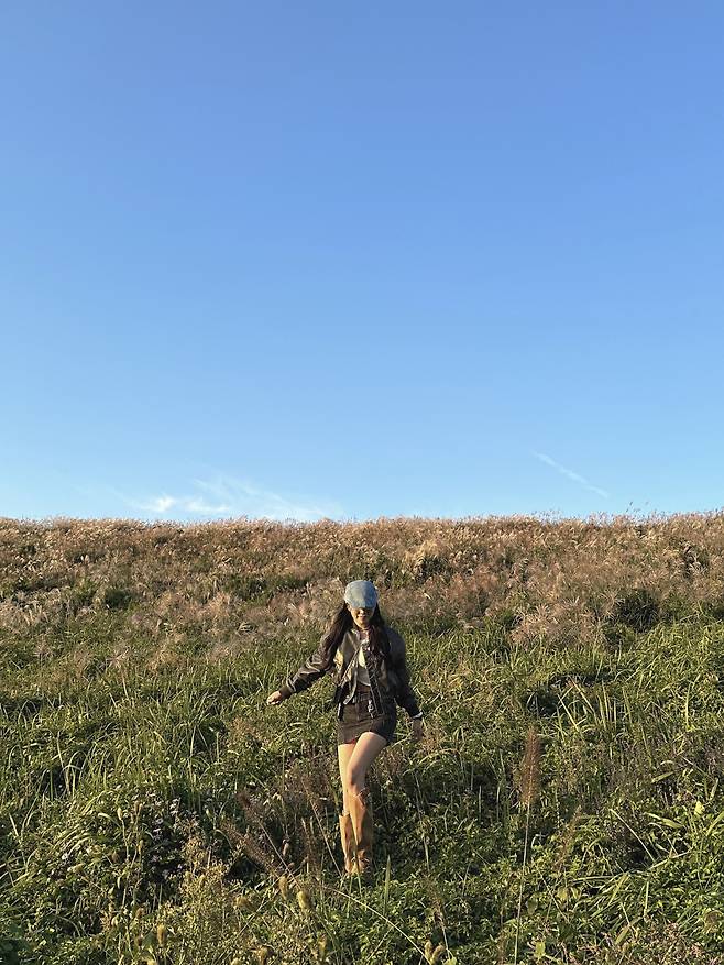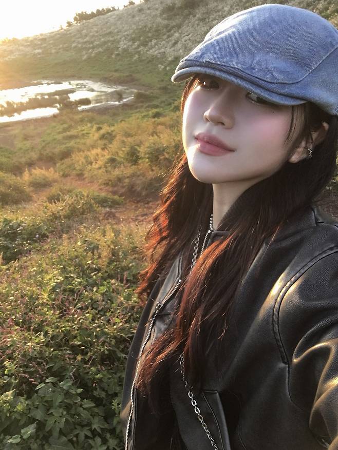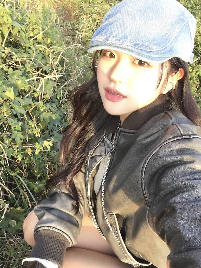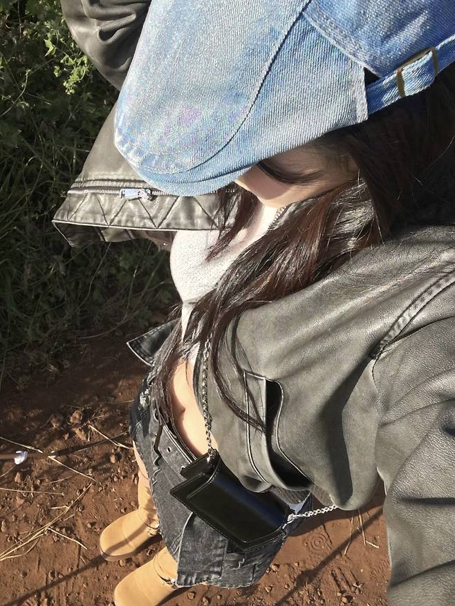 레더 크롭 봄버자켓에 흑청치마에 헌팅캡 색감과 부츠 색감으로 가을 분위기 더해주기!