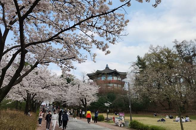 두 번째 겹벚꽃 스팟은 서울상상나라 바로 앞에 위치하고 있는데, 산책하며 잠시 구경하고 가는 것을 추천해요(벚나무가 별로 없거든요..).
