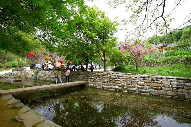 충남 서산에 위치한 개심사는 봄철 청 벚꽃과 겹벚꽃이 아름답게 공존하는 사찰입니다. 특히 4월 중순부터 5월 초까지 벚꽃이 만개하여 사찰과 함께 잘 어우러진 모습은 우리나라의 전통이 고스란히 드러나죠.