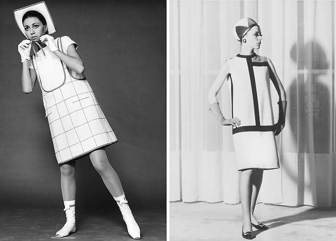 왼쪽 앙드레 쿠레쥬가 선보인 미니 드레스. photographed by F.C. Gundlach, 1965.