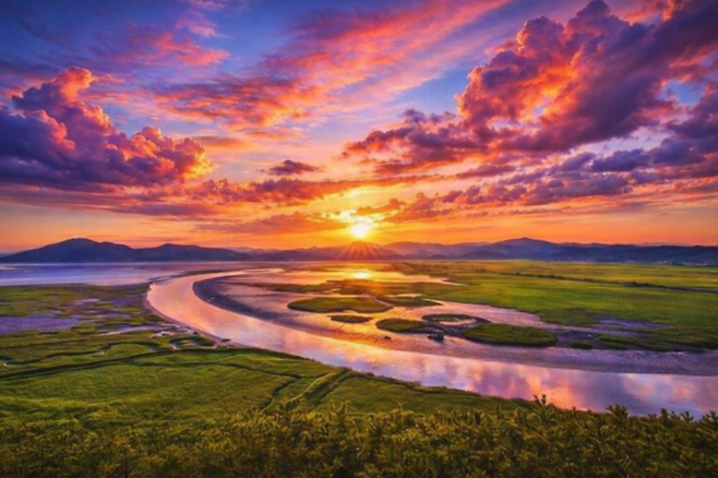 순천만의 진짜 하이라이트는 노을이 내려앉는 순간입니다. 붉게 물든 하늘 아래 갈대밭이 금빛으로 반짝이고, 수로에는 석양이 그대로 비칩니다. 이 풍경 때문에 순천만 노을은 전국에서도 손꼽히는 석양 명소로 불립니다.