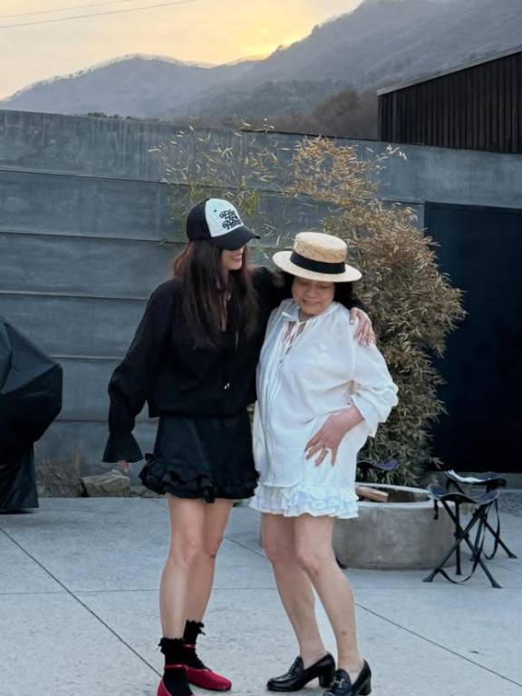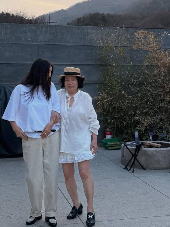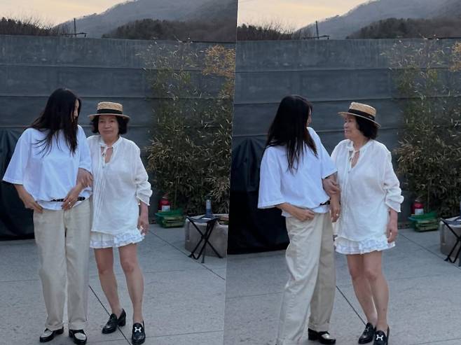 여동생은 모친과 같은 디자인의 의상을 블랙 컬러로 스타일링해 세대를 뛰어넘는 감각을 보여준 모녀의 시밀러룩은 시선을 끌었습니다.
