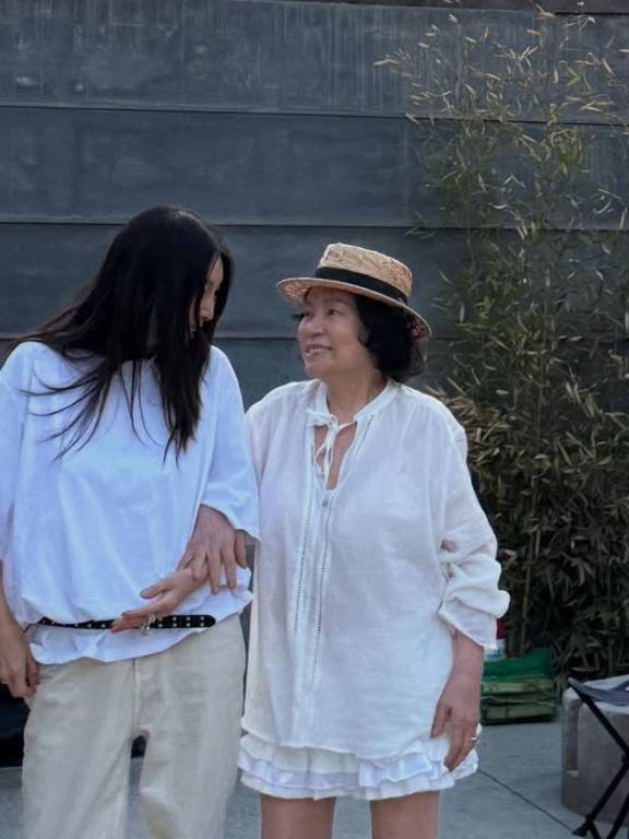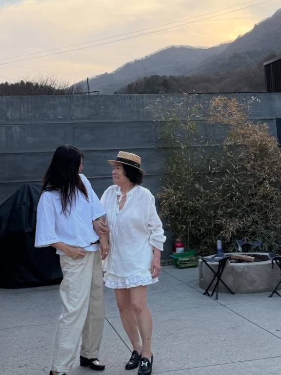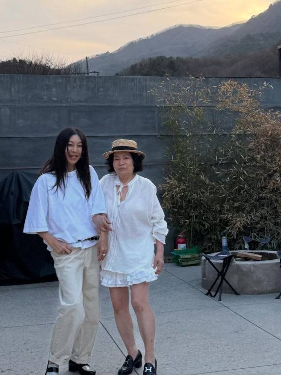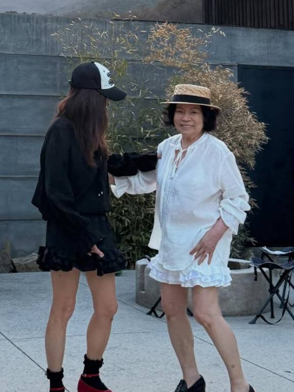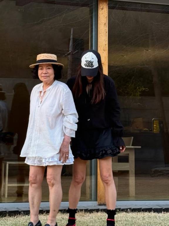 또한, 86세 모친은 화이트 러플 미니스커트에 밀짚모자를 매치한 감각적인 스타일로 시선을 끌었습니다.