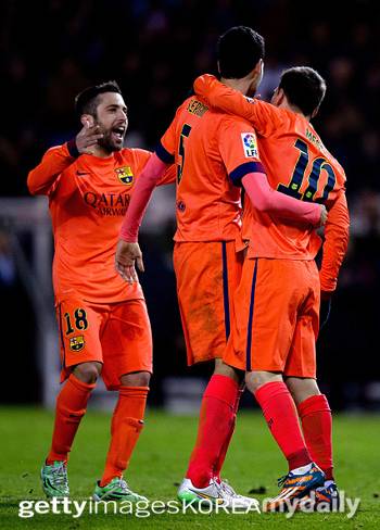 [메시(위 왼쪽)·부스케츠(위 가운데)·알바, 바르셀로나 시절 메시(중간 오른쪽)·부스케츠(중간 가운데)·알바, 메시. 사진=게티이미지코리아]