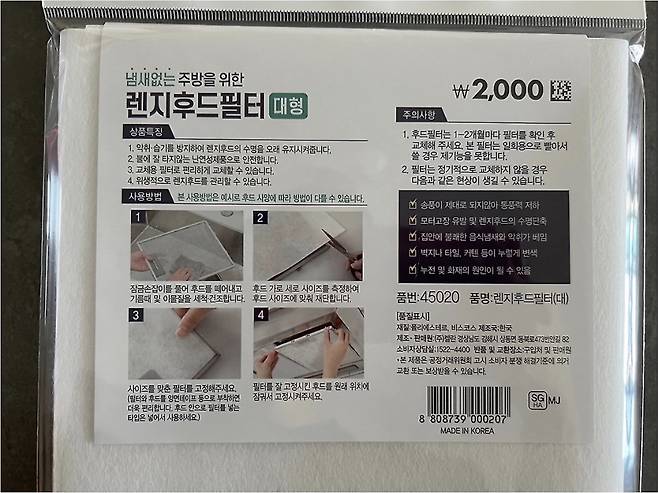 다이소 렌지후드필터 특징
