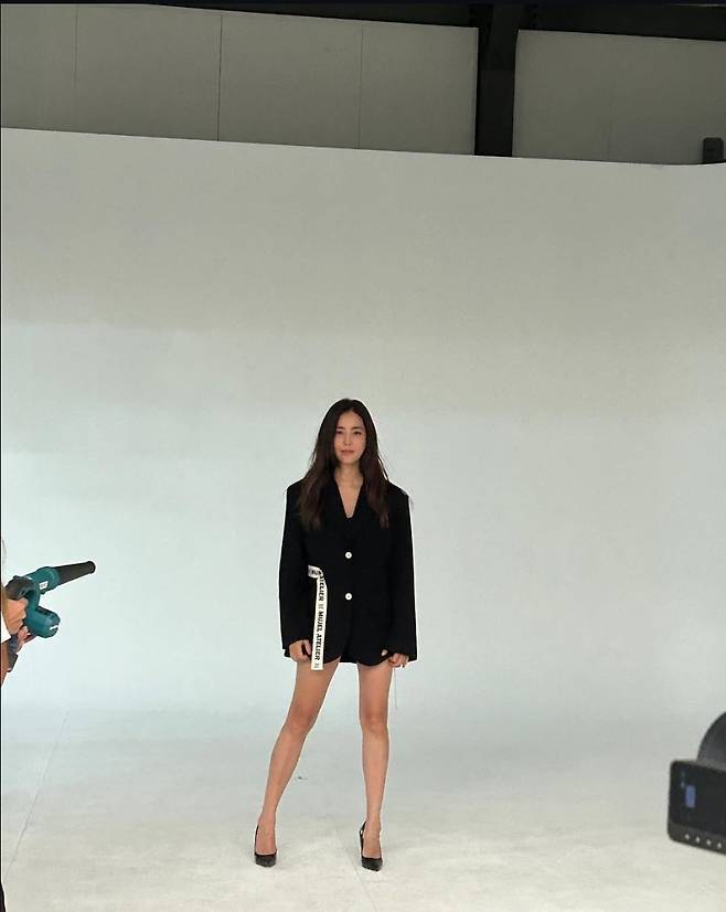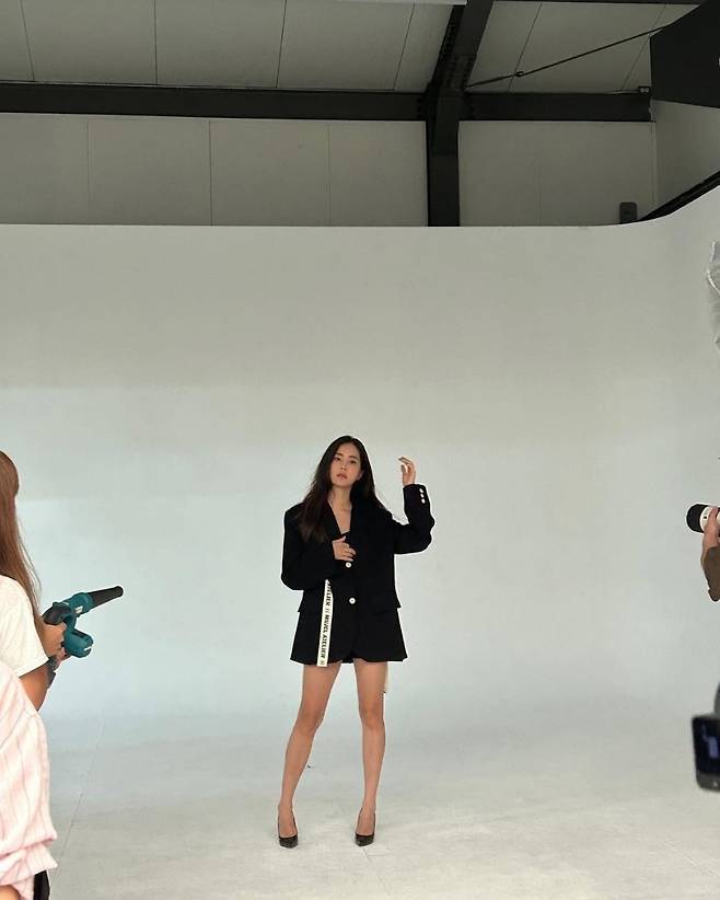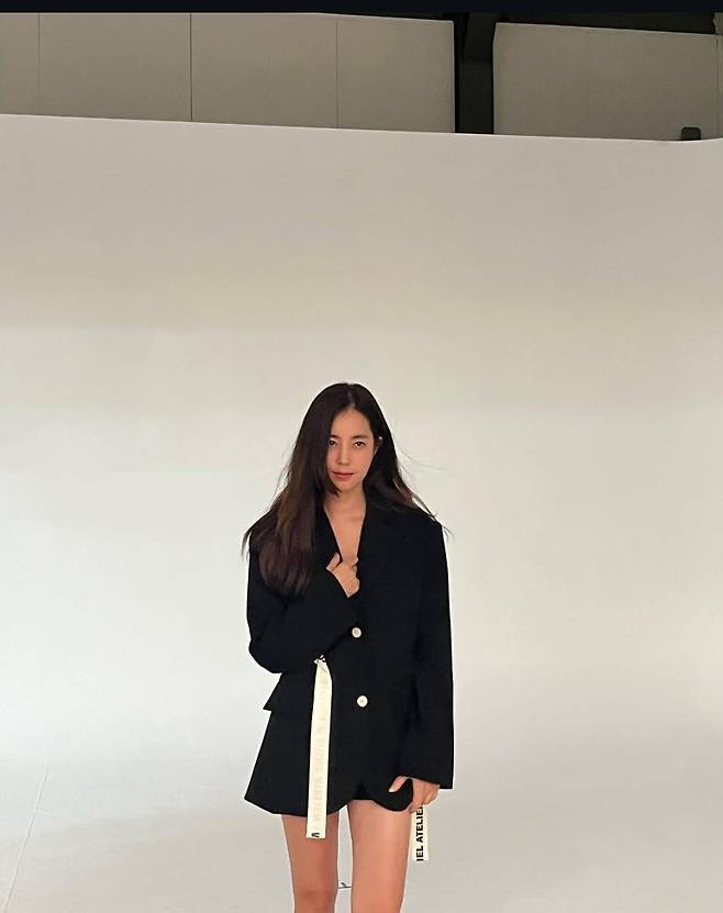 한채아는 박시한 블랙 재킷에 쇼츠를 매치해 트렌디하면서도 시크한 스타일을 선보였습니다.