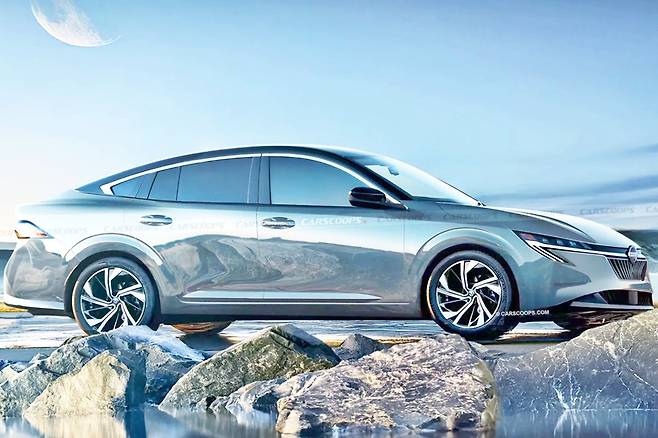 풀체인지로 재탄생할 2027년형 닛산 센트라는 전면부부터 후면까지 완전히 새로워졌다. 얇고 날렵한 헤드램프와 수직형 그릴, DRL이 강렬한 인상을 남기며, 쐐기 형태의 측면 실루엣은 공기역학을 고려한 미래지향적 감성을 더한다. 후면은 수평형 LED 테일램프가 와이드하게 이어져 고급감을 강조한다.