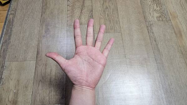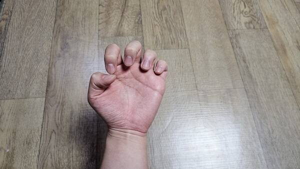처음 이 동작을 시도한 사람들은 비슷한 말을 한다. 손바닥이 당기고, 손가락 관절이 뻐근하다는 표현이다.