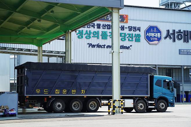 당진시농협쌀공동조합법인 김이섭 대표(56)의 안내에 따라 쌀 가공 과정을 살펴봤다. 마침 25톤 규모의 대형 워킹카가 벼를 옮기는 중이었다. 자리에 맞게 후방 주차한 다음 벼를 뒤편으로 흘려보내는 방식이다. 2023년 한 해에만 약 6만2000t(톤)의 벼가 당진 RPC에 들어왔다.