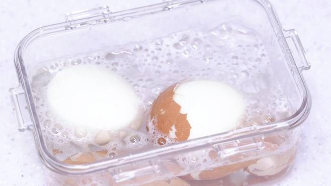 찬물 속에서 계란을 까면 껍질이 수분을 머금어 더 쉽게 떨어지고, 흰자 표면도 부드럽게 유지됩니다.