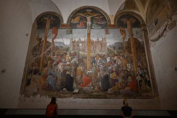 당시 벽화는 프레스코 기법으로 그려졌는데요. 이탈리아어로 ‘신선하다’는 뜻인 '프레스코'는벽에 석회를 바른 다음, 벽이 다 마르기 전에 수용성 안료로 그림을 그리는 기법입니다. 안료가 벽에 스며들면서 마르기 때문에 작품이 완성되면 수정이 어렵습니다. 화가들은 하루 작업 분량을 계산한 다음 치밀한 계획 아래 그림을 그렸습니다. 마사초가 그린 『성삼위일체』, 프라 안젤리코의 『수태고지』, 조토의 『스크로베니 예배당의 프레스코』, 미켈란젤로가 시스티나 예배당에 그린 『천지창조』나 『최후의 심판』, 라파엘로의 『아테네 학당』이 모두 프레스코 기법에 의해 그려진 겁니다.