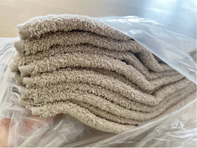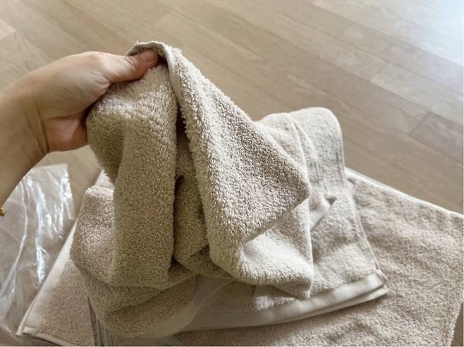 새 수건에는 먼지가 잔뜩 붙어 있기 때문에 꼭 먼지를 탈탈 털어주세요