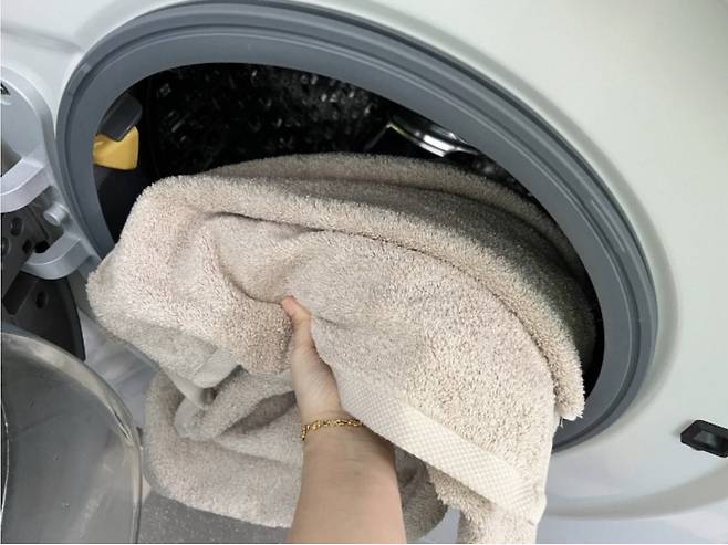 구입한 수건을 전부 세탁기에 돌리고 싶지만 수건은 최대 5장 이하로 단독세탁해주어야 해요