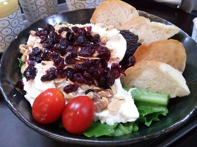 바로 고구마, 물김치, 방울토마토, 리코타치즈의 조합이다. 언뜻 보면 전혀 어울리지 않을 것 같은 조합이지만,