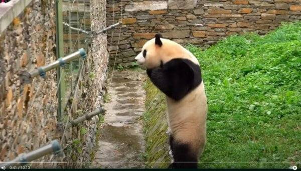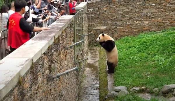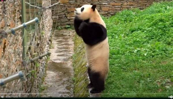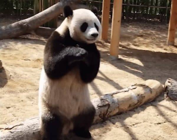 팬 채널인 ‘푸둥푸둥’측이 직접 촬영한 영상을 보면, 푸바오는 중국인 관람객들이 뭐라고 웅성거리자 벌떡 일어나, 아이가 어른에게 절 하기 직전 모습 처럼, 두팔을 어깨에 붙인 뒤 두 손을 오므린채 고개를 숙이는 행동을 여러차례 반복했습니다.