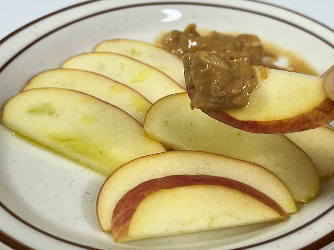 사과와 땅콩버터 조합은 아침 식사 대용이나 가볍게 챙겨 먹는 건강 간식으로 활용하기에 아주 좋습니다. 사과의 당분이 뇌와 근육에 빠르게 에너지를 공급해 주고, 땅콩버터와 올리브 오일의 건강한 지방이 포만감을 오래 유지시켜 의외로 든든합니다.