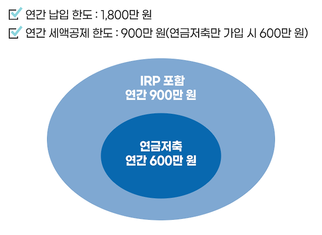 연금저축과 IRP를 합쳐 연금계좌라고 하고, 한 해 1,800만 원까지 저축할 수 있습니다. 또, 한 해 최대 900만 원까지 세액공제 혜택을 받을 수 있습니다.